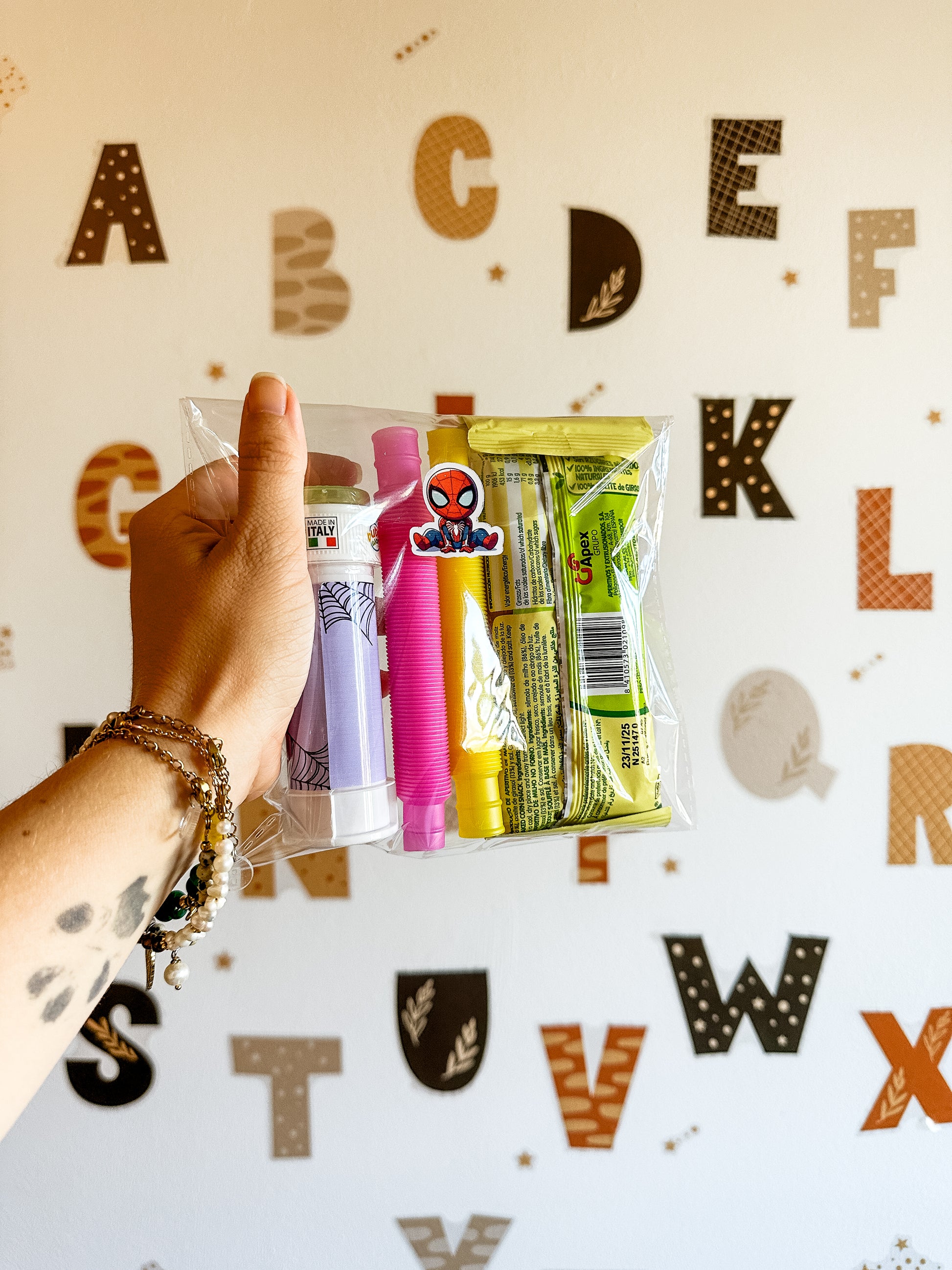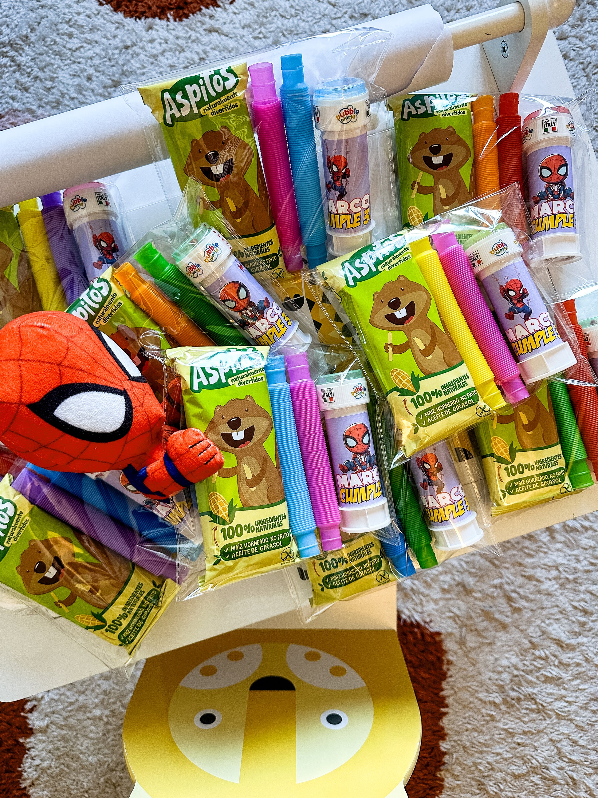 - Las bolsitas van listas para ser entregadas, cerradas también con una pegatina acorde a la temática / colores. ¡REGALO LISTO!